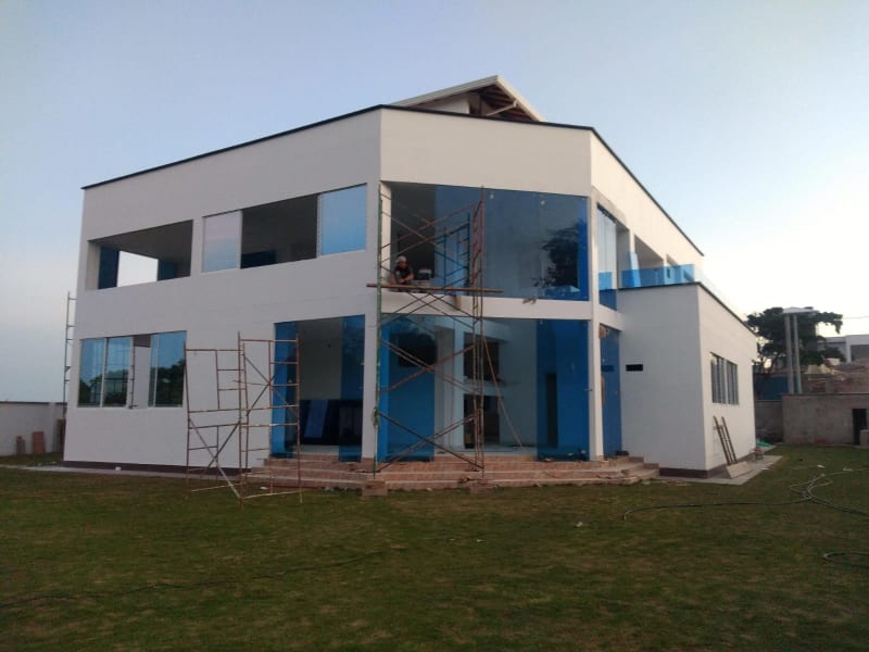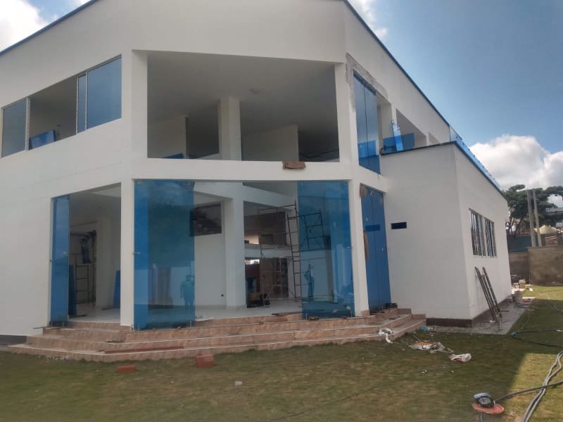 Trabajos realizados en techos de policarbonato, vidrio templado y estructuras metálicas para espacios residenciales y comerciales.